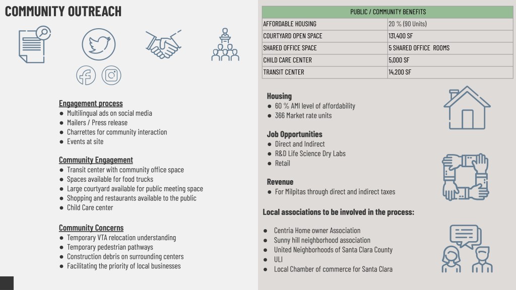 The VISION for the Innovation District is to become a new center for innovation and applied technology in Silicon Valley. It is to create an iconic building to draw growth and popularity to the area that is consistent with the city’s vision. We aim to create an affordable residential, commercial, and transit area that would support the community and invite outsiders to contribute to the local economy.